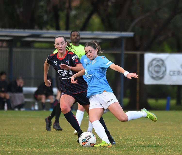 The hosts came close with 19 minutes on the clock. Tayna Campos’ free-kick from 30 yards out bounced off of the wet turf in front of Perth SC keeper Rebecca Bennett and needed to be pushed out for a corner at the foot of the right-hand post.