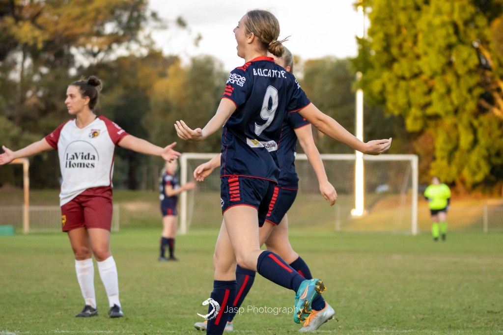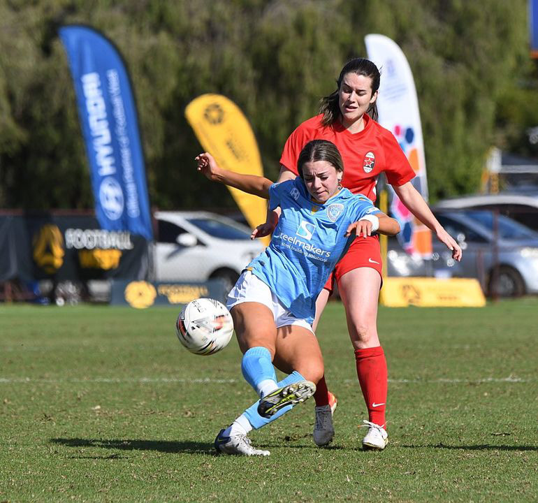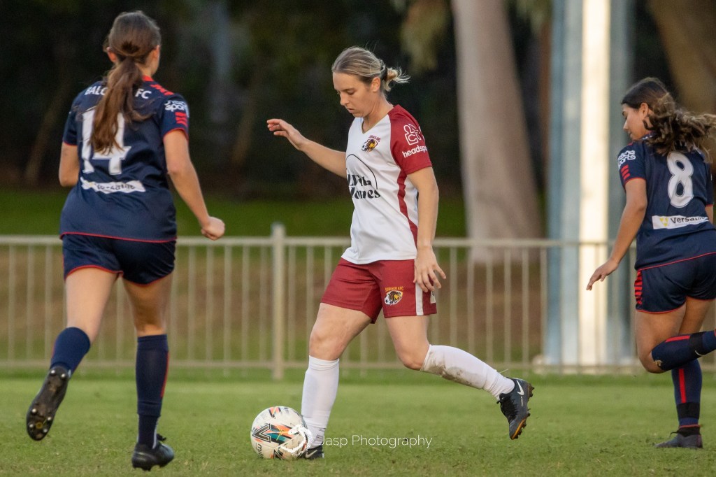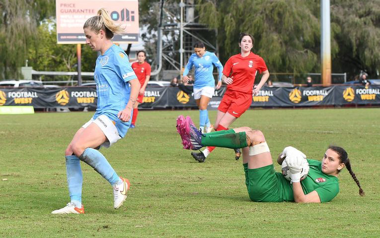 With 25 minutes remaining, Carla Bennett advanced through the midfield and threaded a delightful probing pass which dissected the Perth SC defence to find Sarah Carroll. The Perth Glory A-League Women player ran through unseen to shoot low into the left-hand corner of the net, but the assistant referee’s flag was raised for offside.