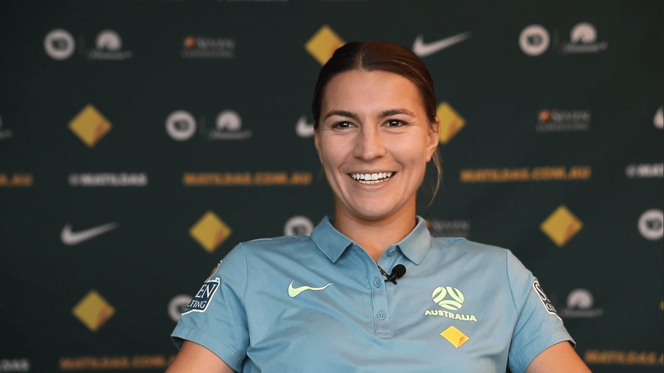 Above: Steph Catley speaking from the Australian team camp this week. Image: Football Australia.