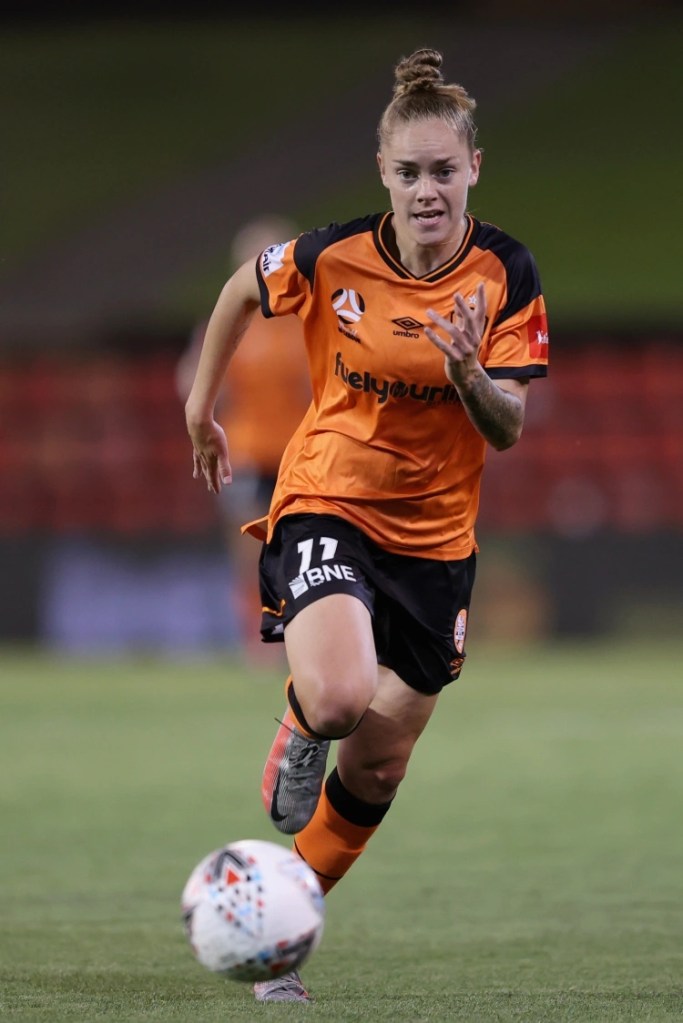 Above: Jamilla Rankin brings the ball away for Brisbane Roar. Photo: Sofascore.