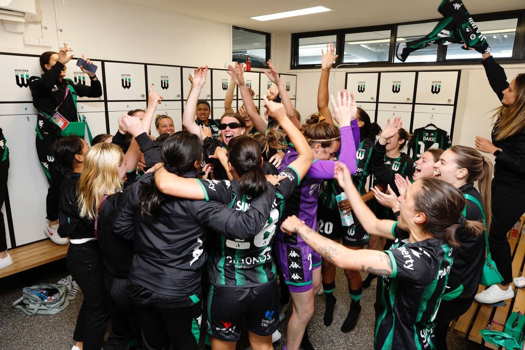 Above: Celebrations after Jess McDonald’s historic goal for Western United. Photo: Western United.