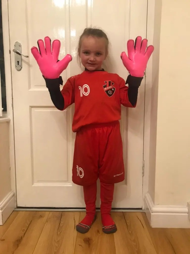 “She has joined a girls’ football team and plays both girls’ and boys’ football currently. The first session she went to for Kewford Eagles Under nine girls, the coach wanted to sign her straight away which was amazing, they normally take their time to decide or give the child a few weeks to get used to playing with the team. Since she has started at the girls team, she has played eight games, kept three clean sheets, made two assists and scored two goals.