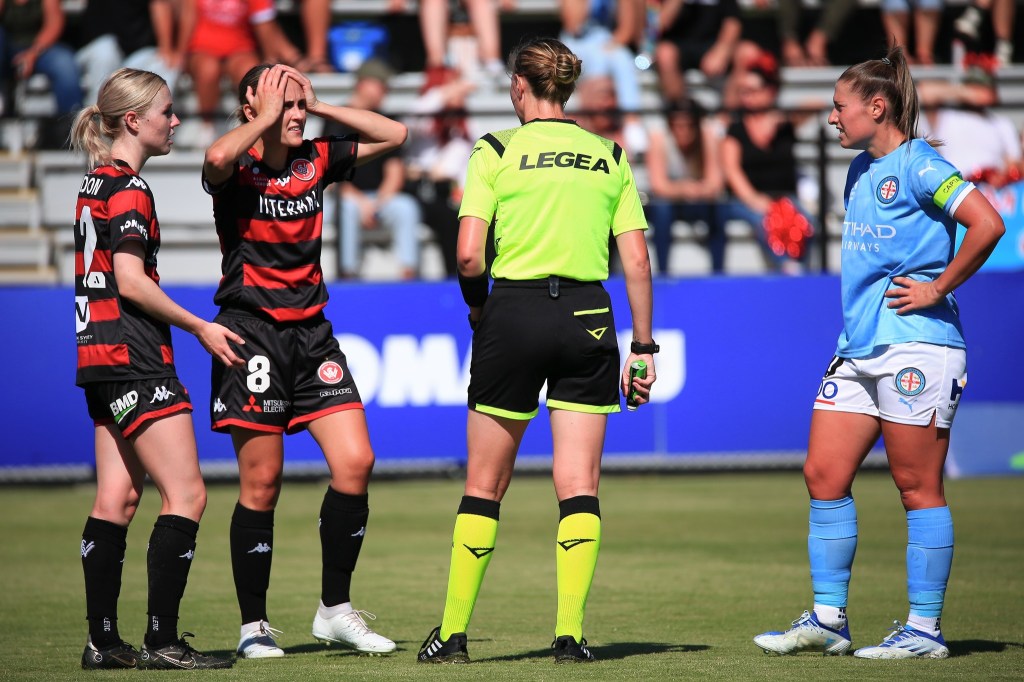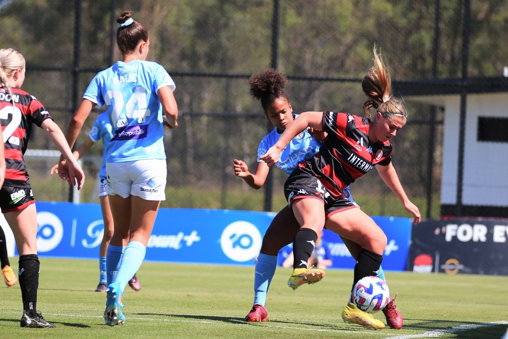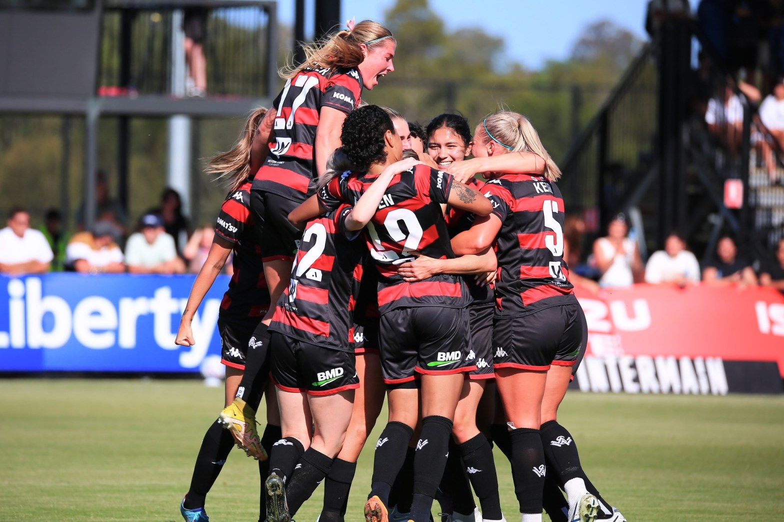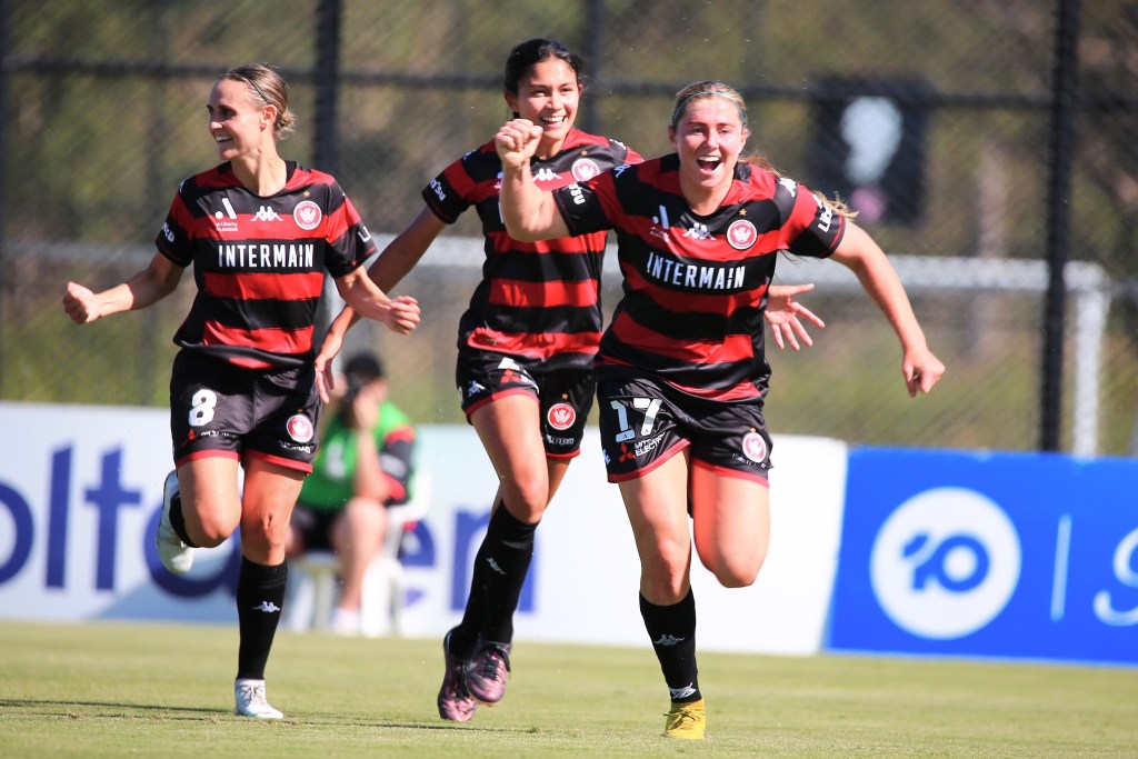 Above: Western Sydney Wanderers celebrate after Olivia Price put them 2-0 ahead. Photo: Kris Goman for Impetus.
