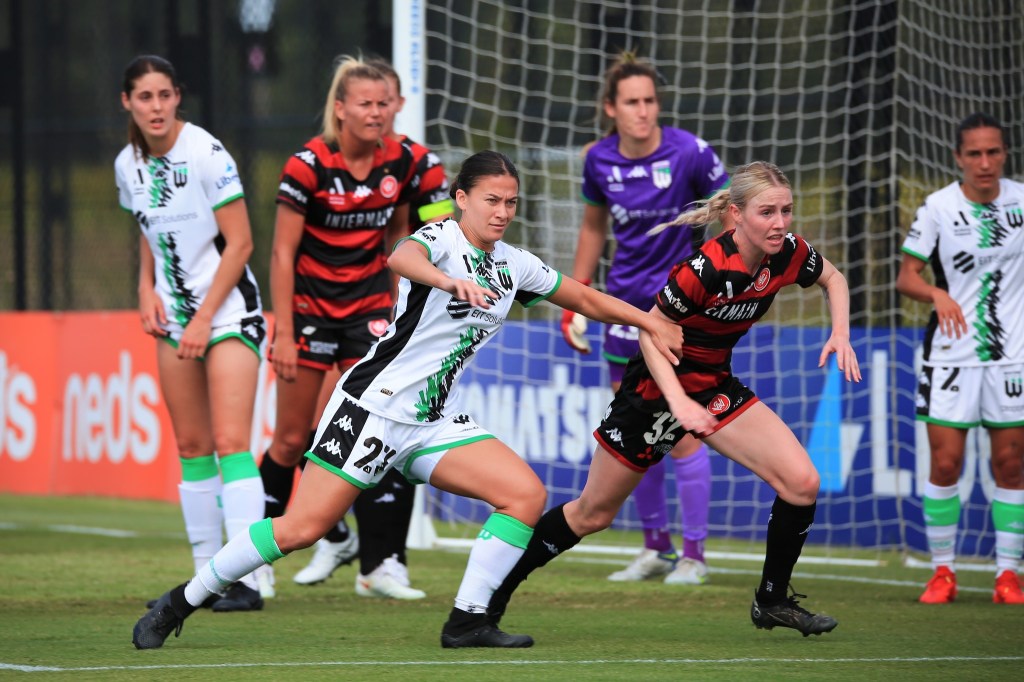 Above: All-action midfield tussle for possession between Western Sydney Wanderers and Western United. Photo: Kris Goman for Impetus.