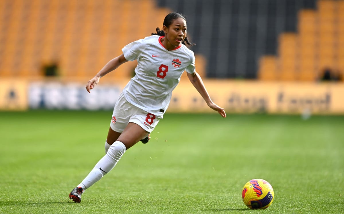 Above: Jayde Riviere in action for Canada. Photo: Manchester World.