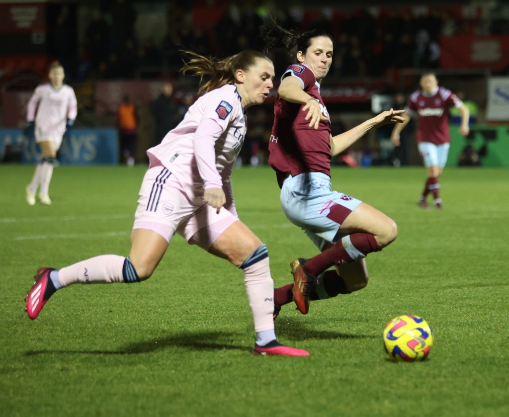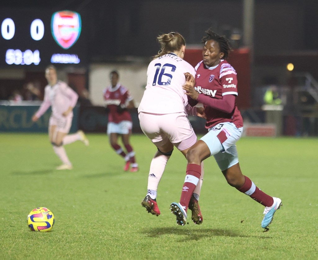 Above: A battle for possession between West Ham United and Arsenal last night. Photo: Ben Phillips for Impetus.