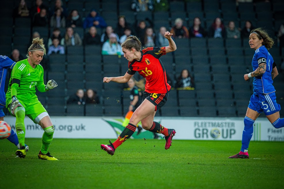 It was a positive start from Italy which saw them go close in the opening minutes, but it didn’t take long for Belgium who are three world-ranking places before their opponents to take the lead through Marie Detruyer in the 15th minute and the Red Flames continued to look dangerous throughout the first half.