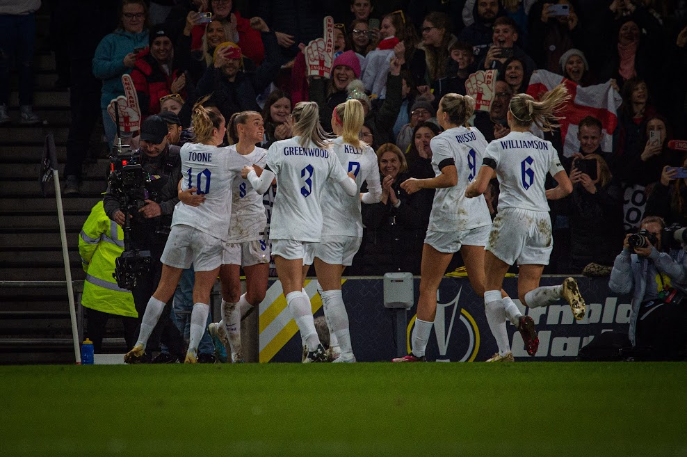 The Lionesses walked out onto the field in Milton Keynes to a rapturous roar, which carried on when Lucy Bronze was presented with a special shirt as well as given an ovation for reaching 100 caps in the last international period.