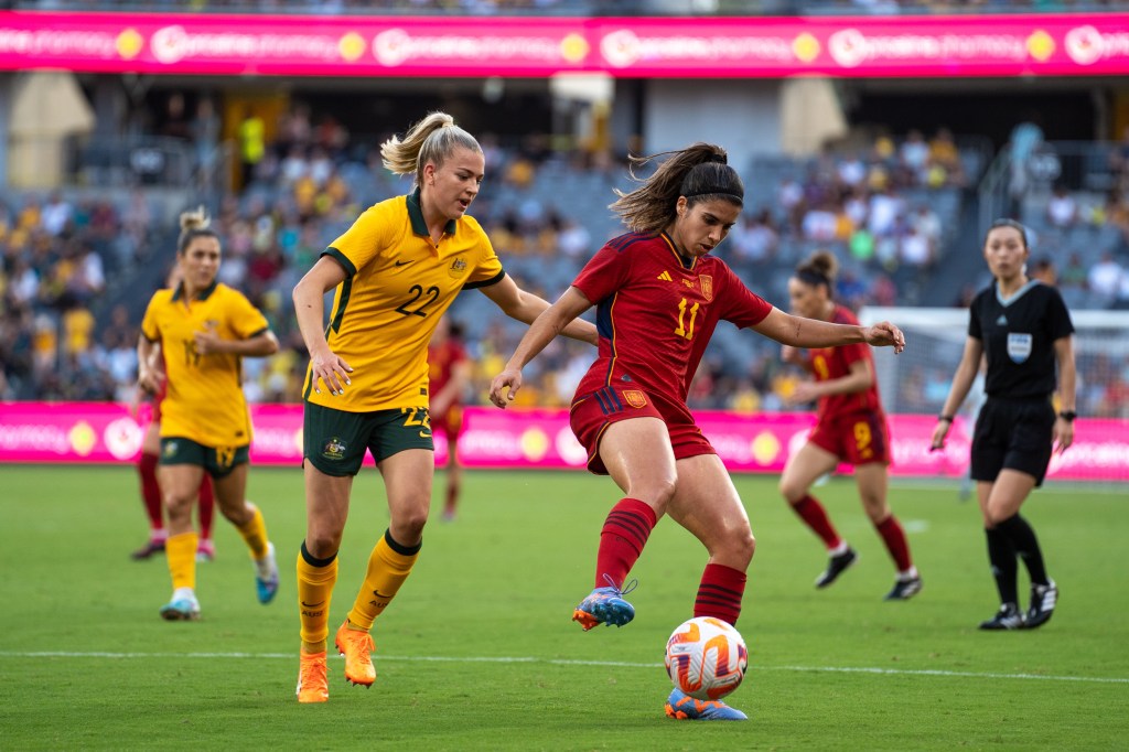 Spain imposed their game from the start. With six minutes played, Alba Redondo burst through and hit a side foot shot which Mackenzie Arnold looked to be dealing with well before the offside flag went up.