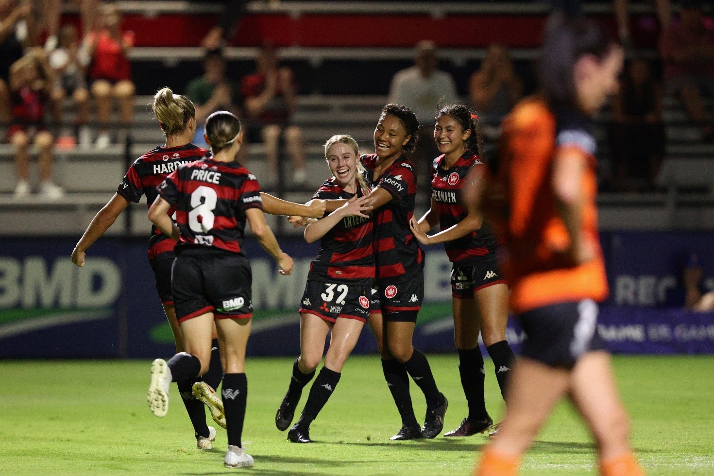 Above: Bethany Gordon celebrates with her teammates after scoring her first-ever A-League goal. Photo: Western Sydney Wanderers.
