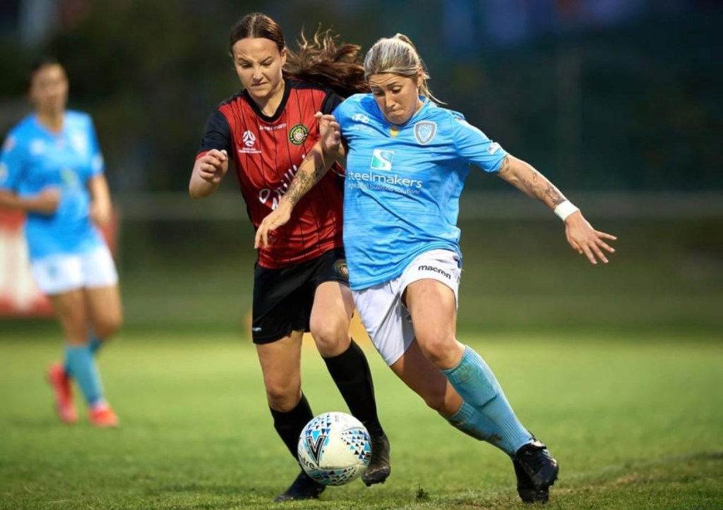 Above: Charli Wainwright (right) in possession for Murdoch University Melville at Perth SC this season. Photo supplied by: Charli Wainwright.