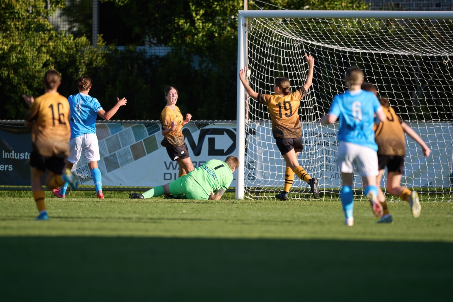It was in the last 10 minutes when the match swung in the visitors’ favour. Powell drove down the wing to play a ball in that Van Heurck looked to clear only for Georgia Cassidy to regain possession and advance into the box and was brought down with a penalty awarded. The aftermath saw a second yellow card for Cook and Azzurri boss Peter Rakic was sent off before Cassidy stepped up to dispatch the penalty confidently.