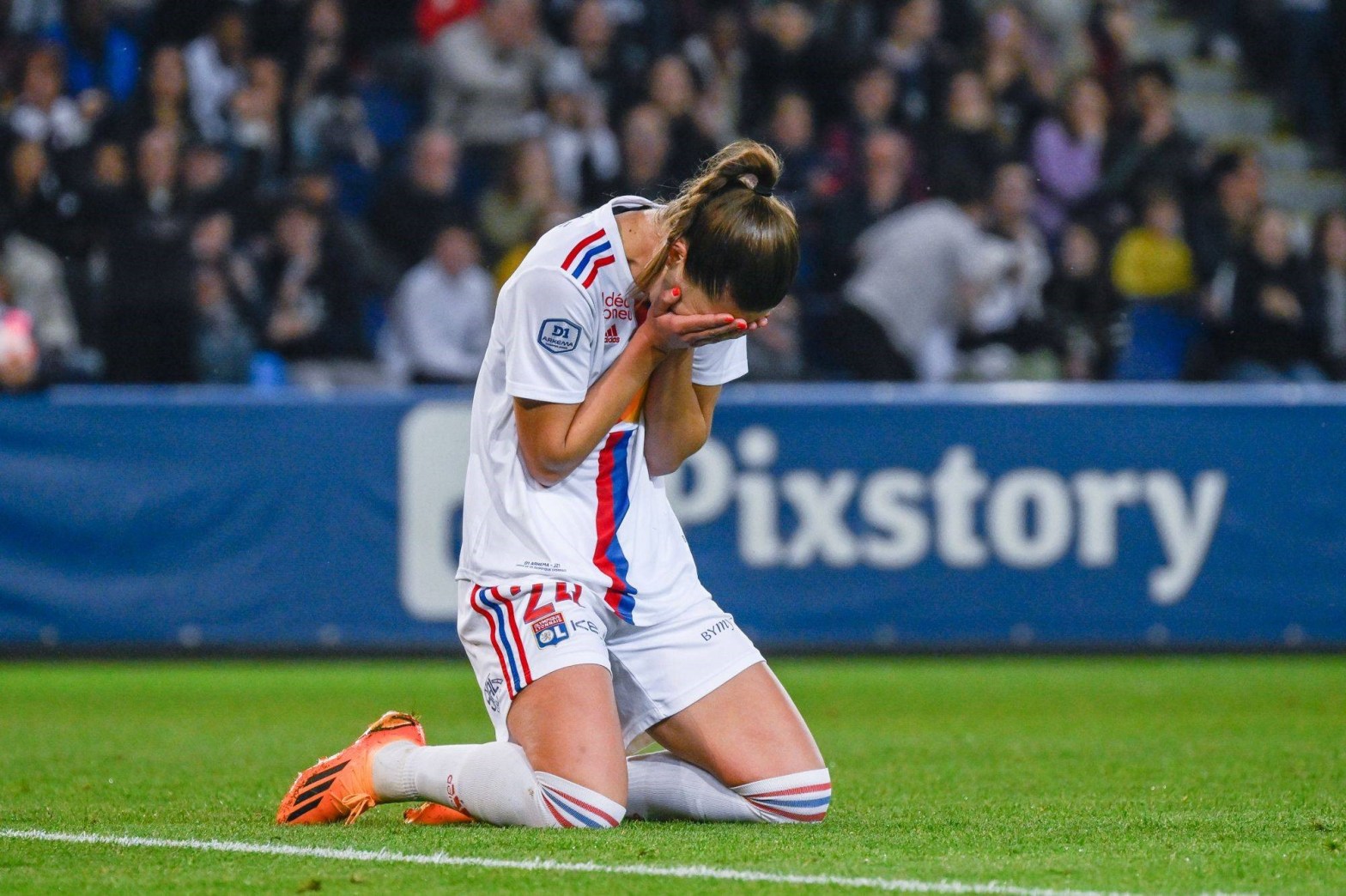 Above: Emotion overcomes Signe Bruun after she scores Olympique Lyonnais’ championship-winning goal. Photo: Damien LG.