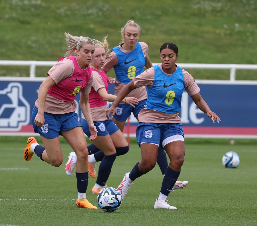 The Lionesses’ World Cup preparations were in full swing at St. George’s Park as a rammed full day, including a gym session and on-pitch training, ended with a media event for the entire squad.