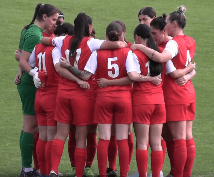 The hosts hit the front on the quarter-hour mark when Kim McCartney’s corner from the right was skilfully volleyed in by Tia Stonehill from the right of centre near the edge of the box.