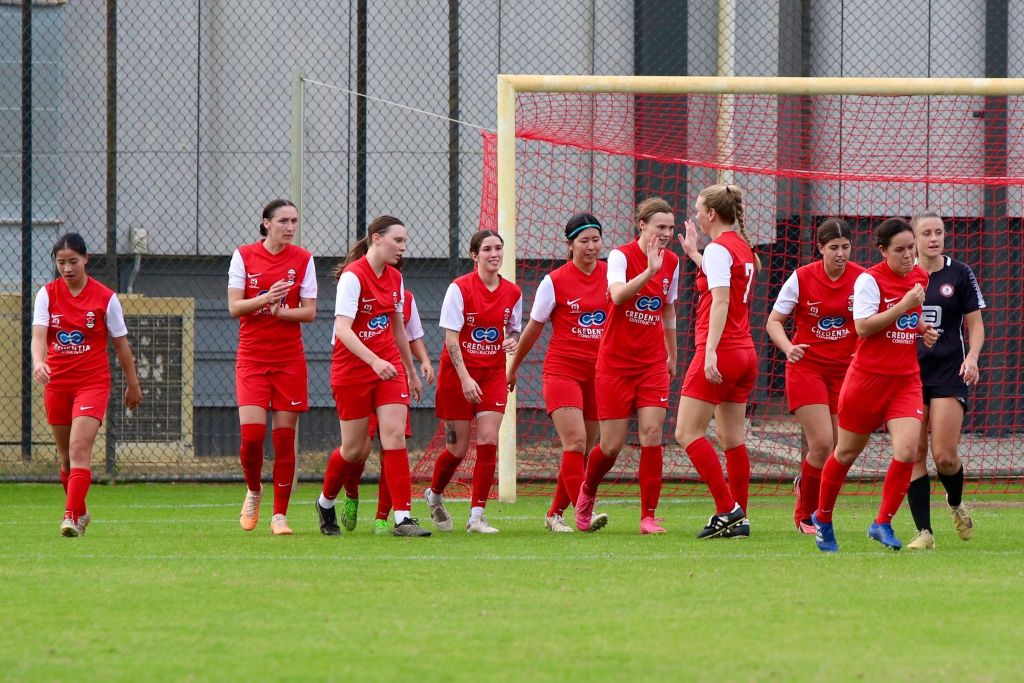 The visitors had their foot on the pedal from the early stages. Seven minutes in, Jamie-Lee Gale won possession from Quyen Doan and sent a swerving shot in from the corner of the box that was turned away for a corner by Maya Diederichsen in the RedStar goal.
