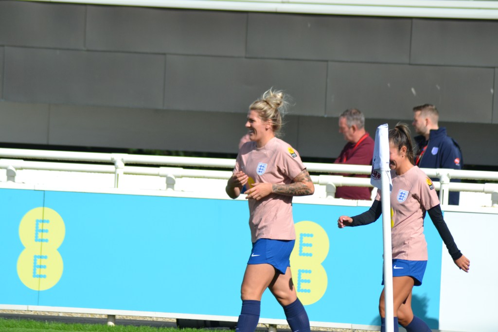 Impetus’ Aimee Reynolds was at St. George’s Park today to review England training and join the media conference with head coach Sarina Wiegman and captain Millie Bright.