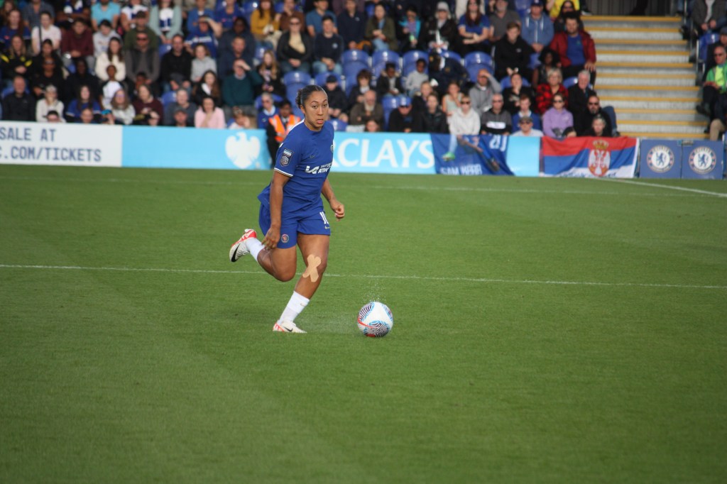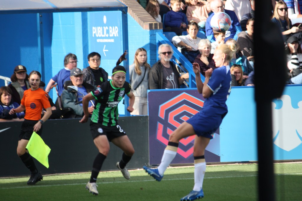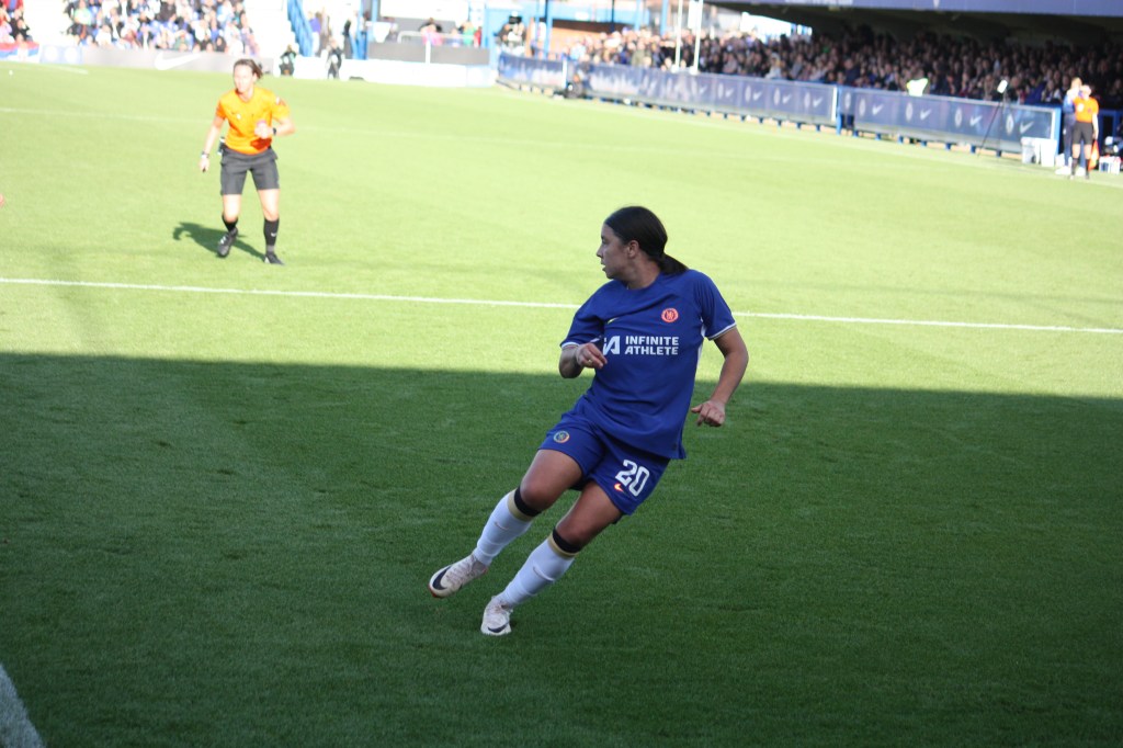 Chelsea are always a better team with Fran Kirby in it, and after she was fed by Millie Bright and got free to have a shot that came off of the side of the bar. Kerr also had another opportunity when Eve Perisset’s free-kick came her way.