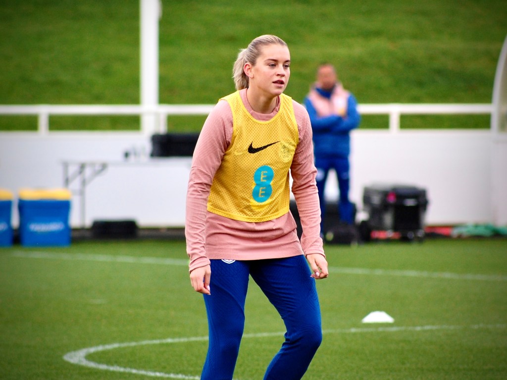 The team took part in their first full training session back yesterday where 24 out of the 25 players were out on the grass – the one absentee being Arsenal defender Lotte Wubben-Moy after sustaining an ankle “knock” at the weekend, which led her to be doing her own separate session in the gym, hoping she can be fit for Friday’s game.