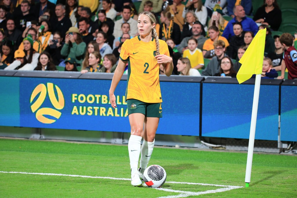 Above: Ellie Carpenter battles for possession in Perth last night. Photo: Kris Goman for Impetus.