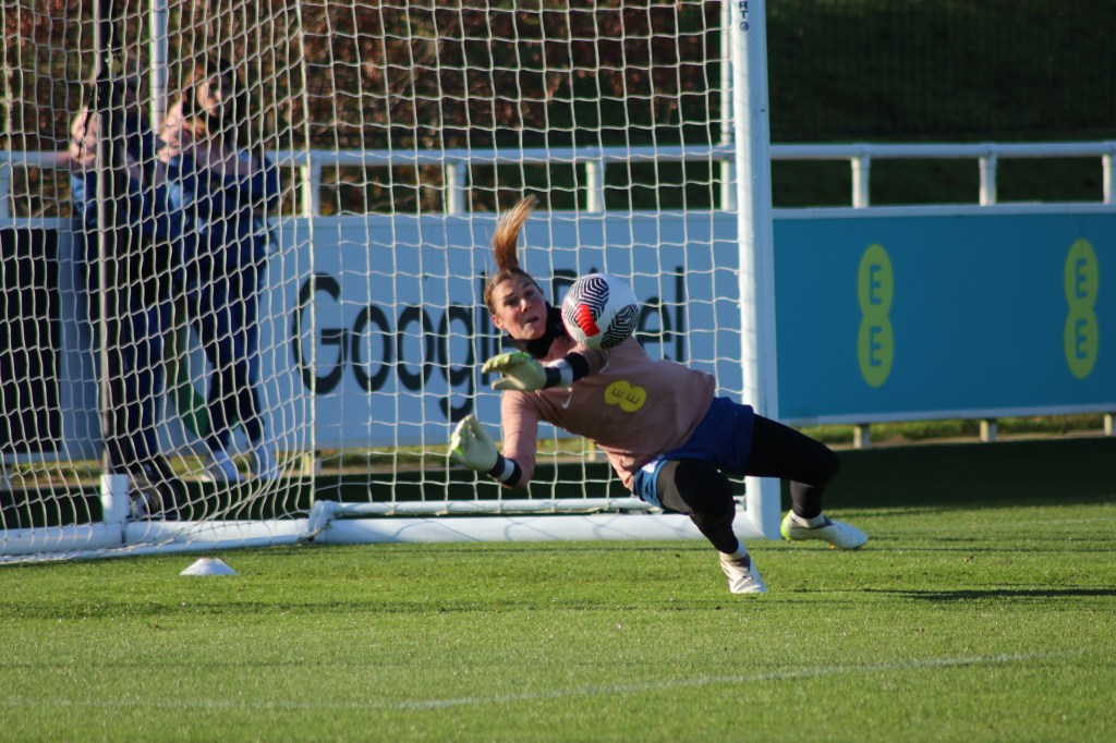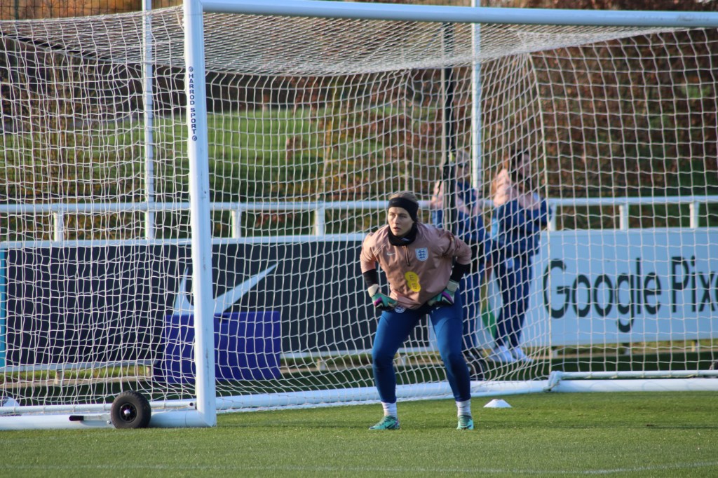The so-called ‘GK union’ had changed slightly from the last camp due to the absence of Ellie Roebuck who didn’t make it into Sarina Wiegman’s tight squad. However, Mary Earps, Khiara Keating, and Hannah Hampton were testing each other from tight angles saves to top corner shots.