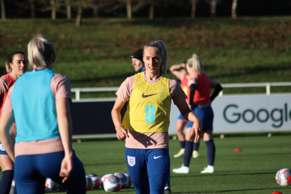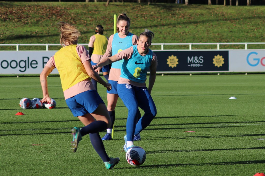 The Lionesses were out on the pitch for a cold morning training session at St. George’s Park ahead of their upcoming fixtures that determine their qualification status for next summer’s Olympics.