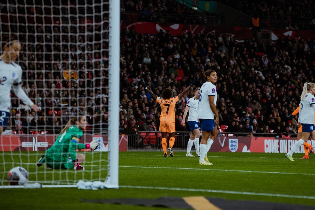 The momentum shifted in the Netherlands’ favour, and the 11th minute saw the visiting side open the scoreline. The visitors finally got the ball into their attacking half, immediately creating a big chance. England’s defence was messy, failing to stop Lineth Beerensteyn’s powerful strike from reaching the back of the net.