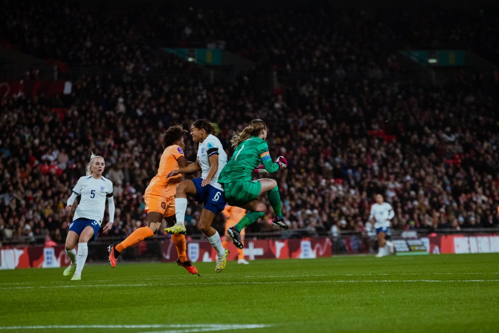 With another chance in quick succession, the away side rocketed towards goal again. England’s captain Mary Earps made a huge clearance from the edge of her box to prevent Jonker’s team from furthering their lead. The Netherlands had found their pace and were making it increasingly difficult for the Lionesses to launch a counterattack.
