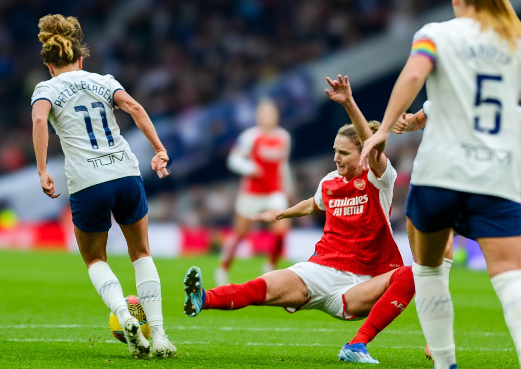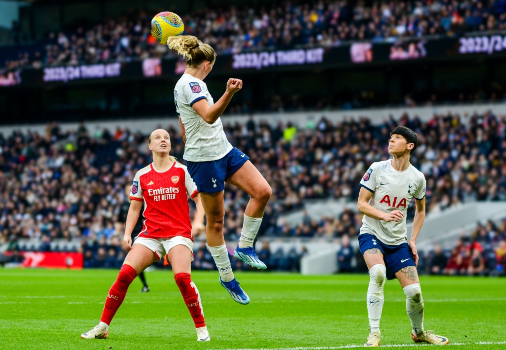 Above: Spectacular action from today’s big WSL derby at Tottenham Hotspur Stadium. Photo: Mariella Prew for Impetus.