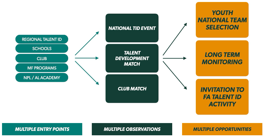 Frequent Talent Development matches will be scheduled in every state and territory where scouted youngsters are selected to play in an 11 v 11 match. Participating players will be selected from Member Federation programs, NPL clubs, A-League clubs, Schools and regional areas. This is not strictly a youth development program, but aims to find as many potential stars as possible to enter those programs.