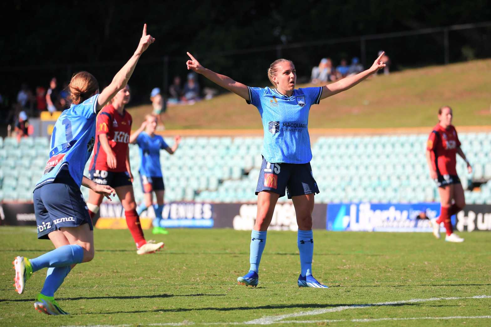 The early momentum on the match sat with the Sky Blues who progressed the ball with ease through the defensive line of Adelaide. Young prodigy Tallon-Henniker made short work of her defender in only the fifth minute off a crisp through ball from Hawkesby. The ensuing corner didn’t result in a goal but it did signal that Sydney were fully engaged.