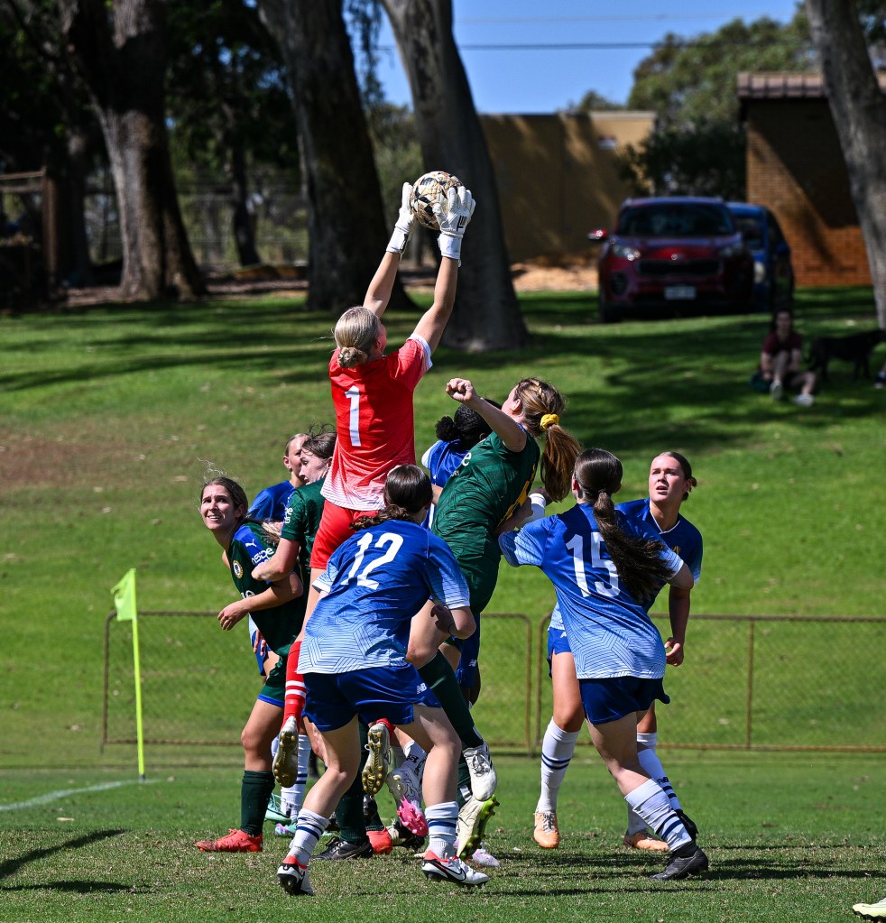 Following a string of well-executed attacking build-up play, Perth SC were awarded a free kick in the 50th minute, and Janice Kiama was shown a yellow card. Despite the opportunity, McAllister’s free kick frustratingly fell straight into the hands of an awaiting Schroeder.