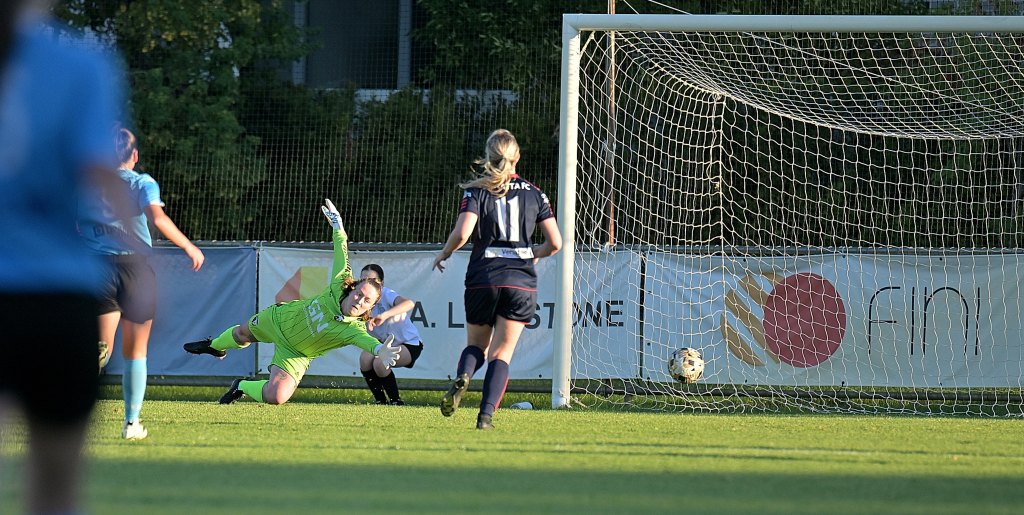 The home side went into the lead just after the half-hour mark when Reina Kagami played a short pass to Renee Leota who in turn found Lauren Continibali outside her on the right wing. The former Balcatta player ran up the line and played in a low ball for an unmarked Caitlin Doeglas who was centrally positioned on the edge of the box to lift a glorious first-time lofted shot into the net.