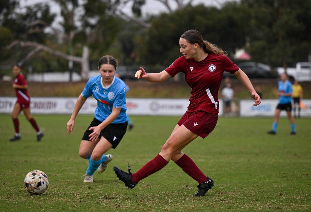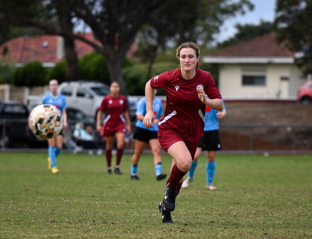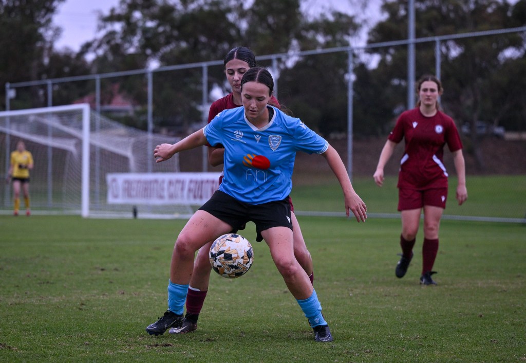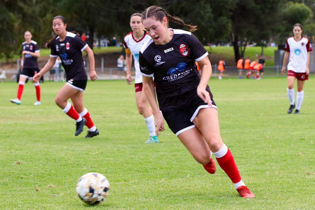 RedStar still were relentless in their possession, giving Subiaco few chances to break down the pitch. In the 27th minute, a quality run from Savannah Olsthoorn resulted in Teixeira forcing her to the ground, conceding a free kick, and providing the home side the opportunity to pull one back. Unfortunately, Frankie Murray-Hocking’s delivery had too much power and was sent flying over the top of the bar.