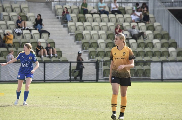 However, as the game moved into the final 20 minutes, they stepped it up. Mikayla Lyons came off the bench, and within moments were level in some style. Leek played a perfectly judged crossfield pass out to Green on the left flank. The Perth Glory A-League Women attacker in turn fed Sophie Meaden ahead of her before getting the ball back. Tightly marked by two defenders, Green got a pass away aided by a Perth boot for Meaden who fired a rocket into the top right-hand corner of the net to level the scores.