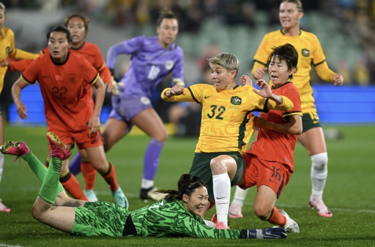 A goal in the final minute of stoppage time from striker Michelle Heyman has secured a 1-1 draw for Australia against China in front of a sold-out Adelaide crowd of just under 53,000.