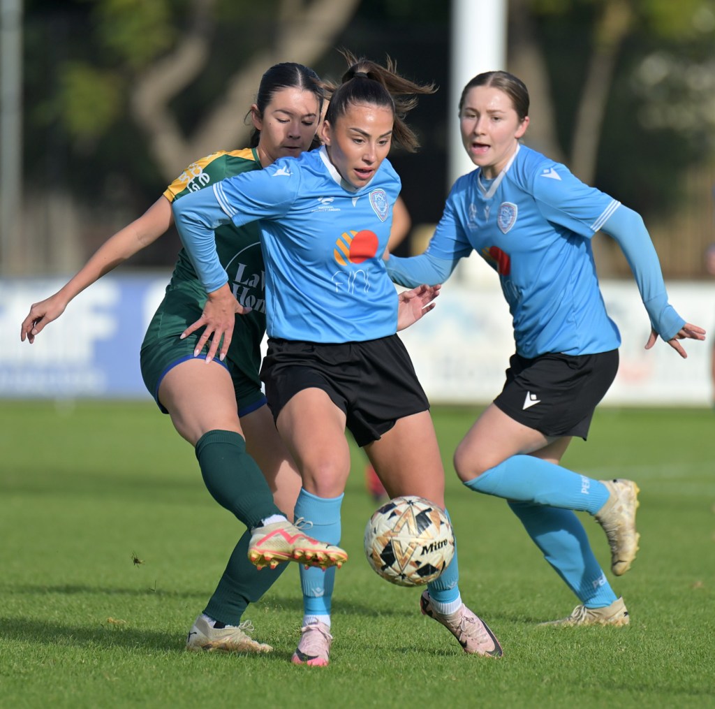 They hit the front with 10 minutes played. A sumptuous double one-two between Charli Wainwright and Daisy McAllister ended with Jess Flannery being found centrally on the edge of the box. The attacker took a touch and cooly hit a shot past Morgan Springer in the UWA-Nedlands goal.