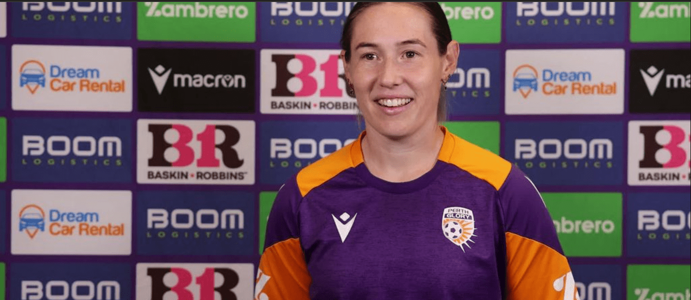 Above: Caitlin Doeglas speaking to the media earlier today. Image: Perth Glory.