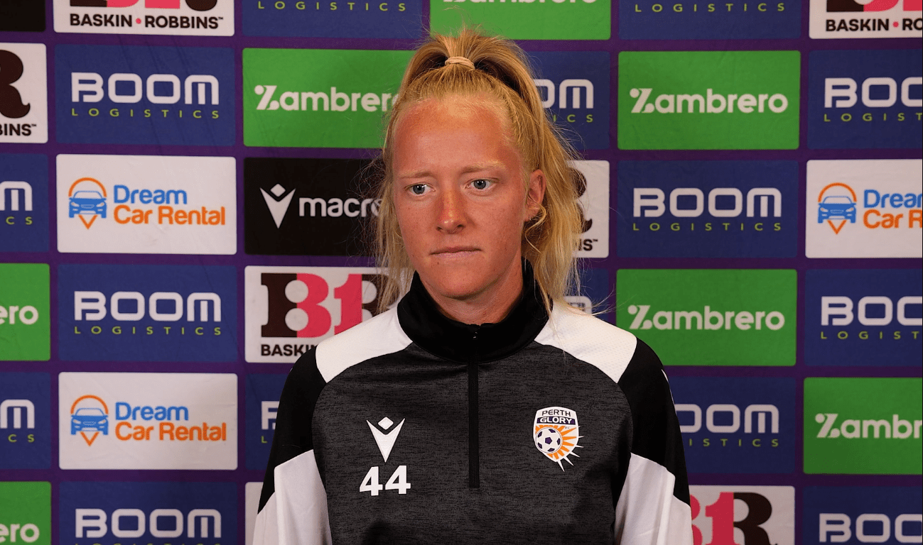 Above: Kelli Brown speaking today to the media. Image: Perth Glory.