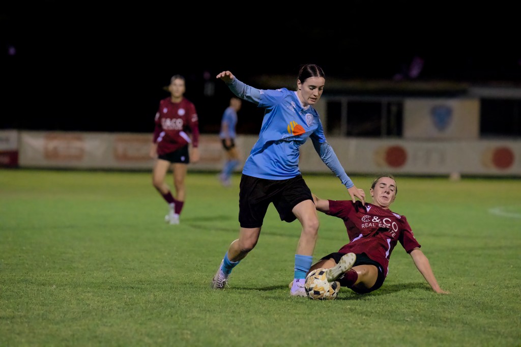Balcatta Etna were first out of the blocks with another impressive performance in downing the talented new Football West Academy (formerly Hyundai NTC) side. Pete Rakic’s team are scoring goals for fun in the pre-season tournament, and this time had a brace from Lucy Jerram and one each from Abbey Meakins and Jamie-Lee Gale to push them into next Friday’s Final. Klaudia Houlis added to her excellent record of scoring in the tournament with the FWA’s goal on the night at Dorrien Gardens.