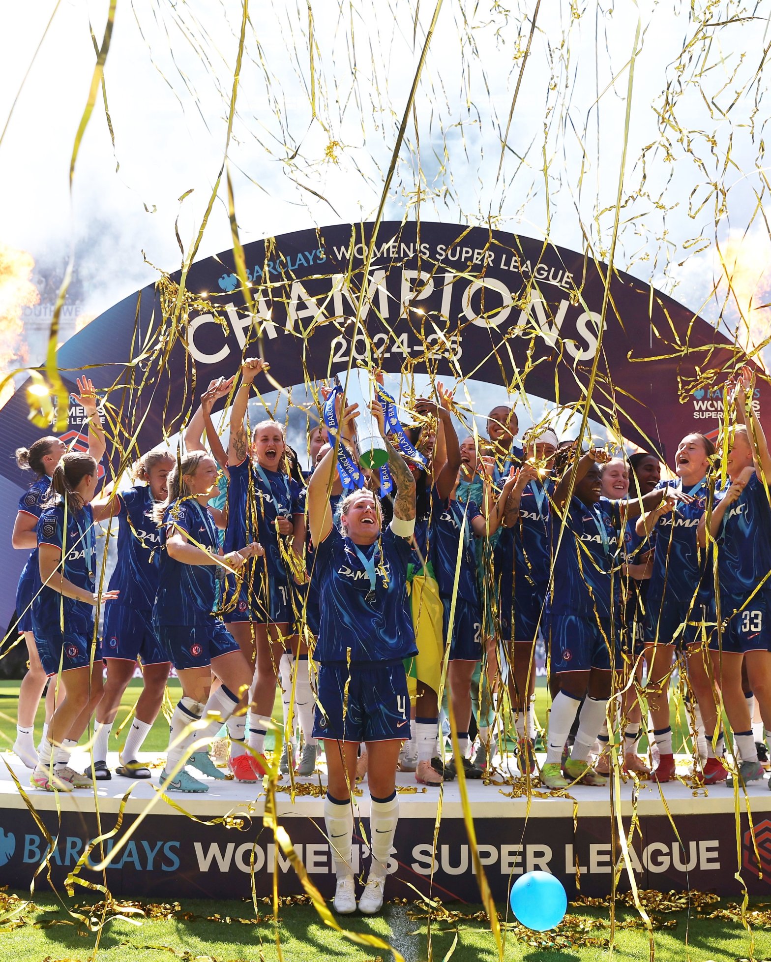 Above: Chelsea celebrate their sixth successsive title win. Photo: Chelsea FC Women.