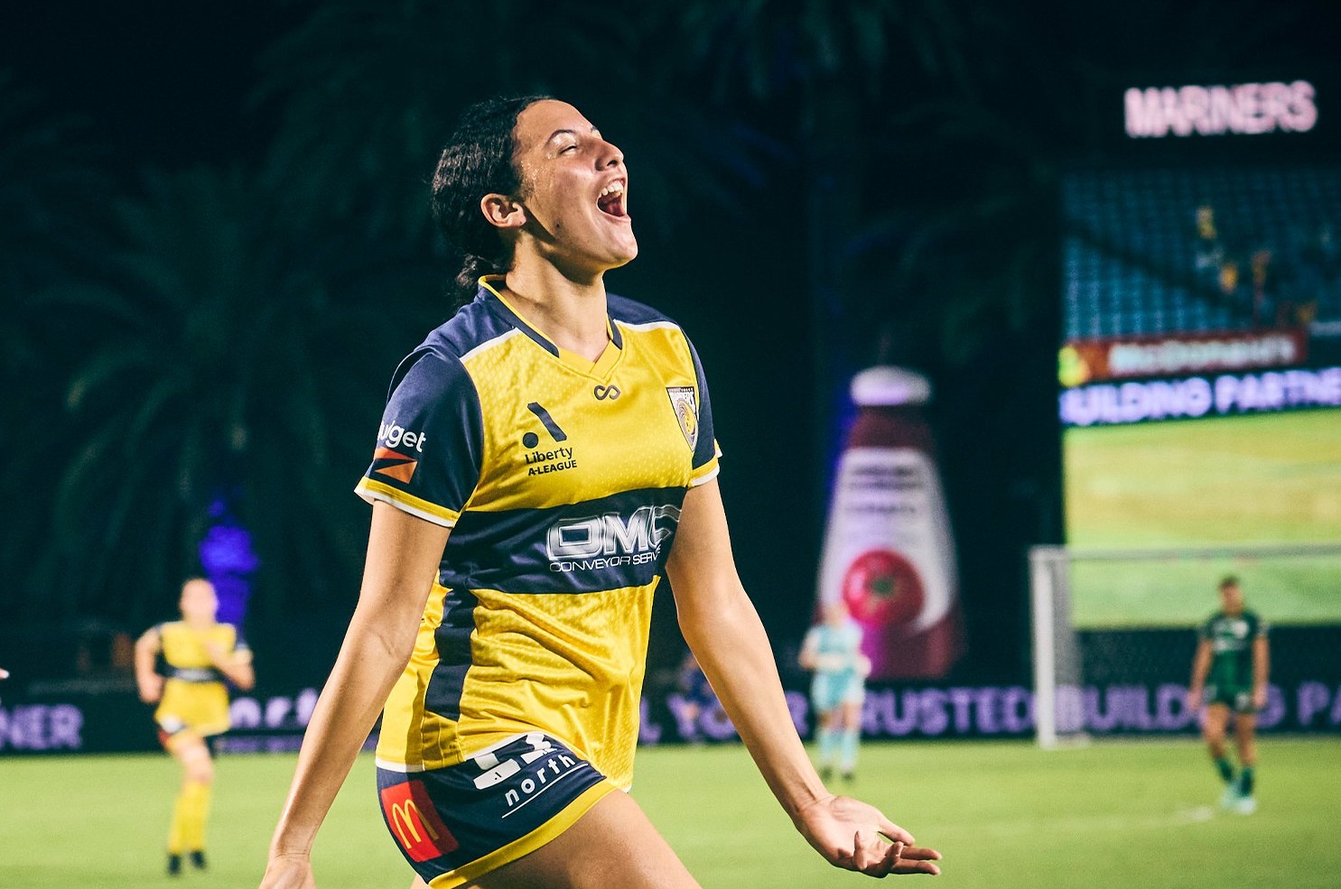 Above: Annalise Rasmussen celebrates – the forward is positive that her and her team mates will have a lot more to enjoy on Sunday at the A-League Women Grand Final. Photo: Central Coast News.