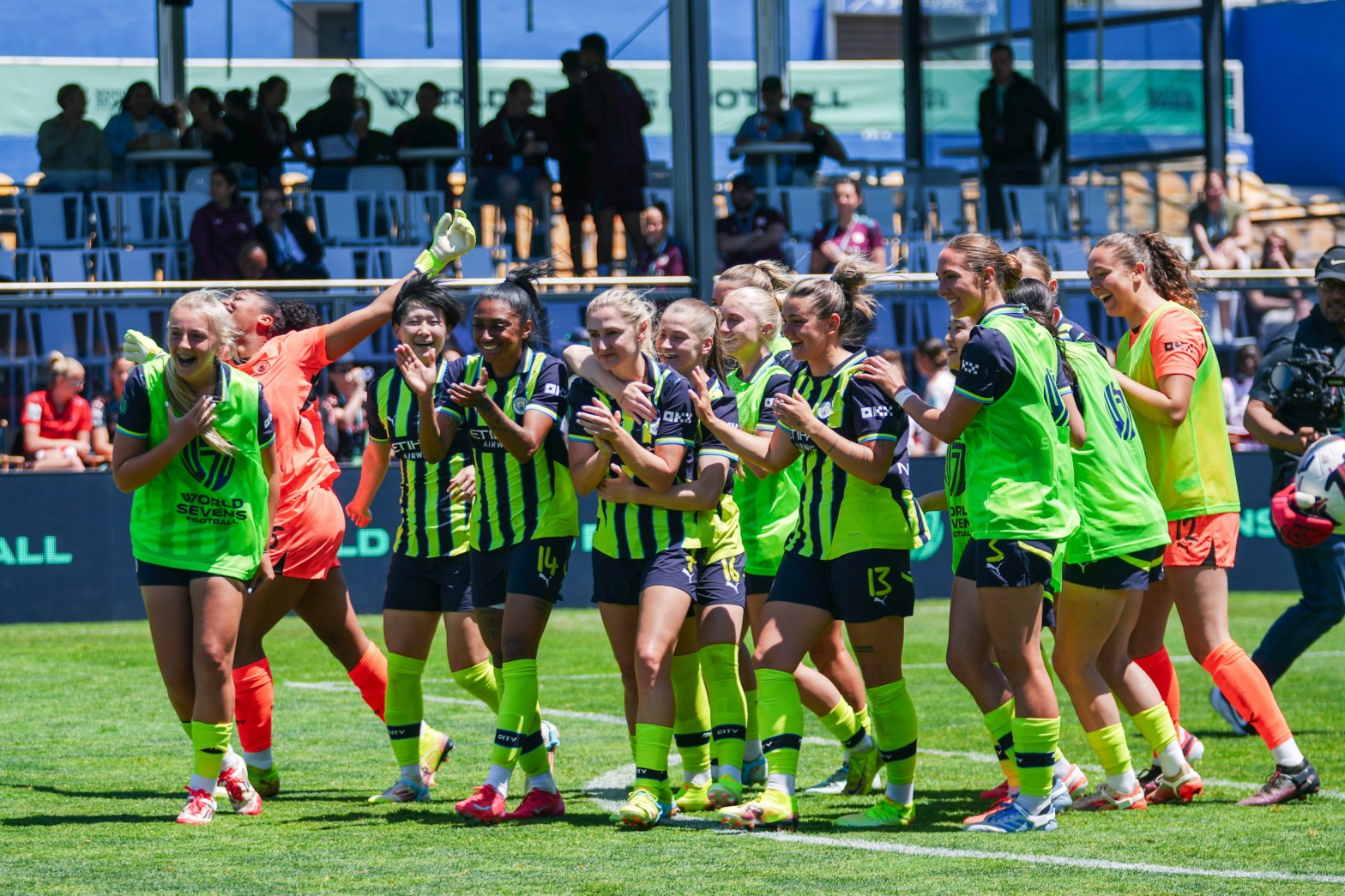 Above: Manchester City celebrate winning on penalties. Photo: ManCityWomen on X.