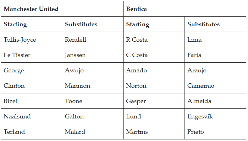 Manchester United: Bizet 2′, Awujo 13′, 18′