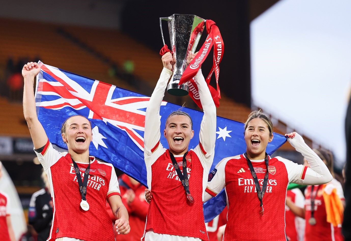 by Alyce Collett (23/5/25) Above: Caitlin Foord, Steph Catley, and Kyra Cooney-Cross (left to right) – Arsenal’s three Matildas stars who have brought a huge number of fans based Down Under to the North London club, celebrate with the Conti Cup last season. Photo: Arsenal Women. In the fifth part of our series of special … Continue reading Australian Arsenal fans share their love of the Gunners ahead of Champions League Final