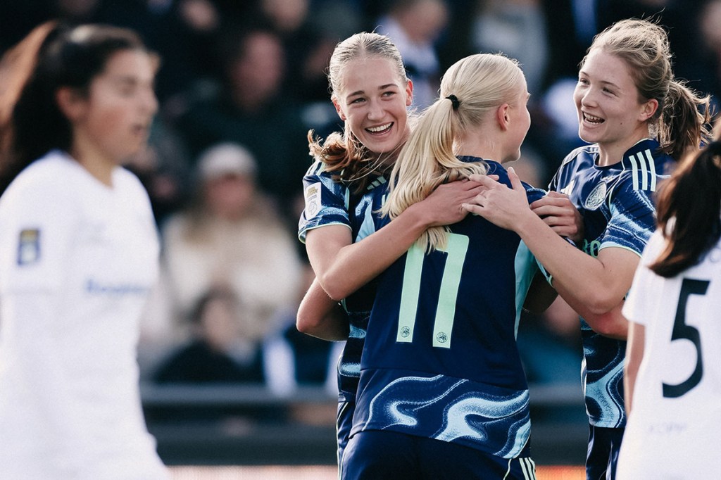 After five minutes, Ilayah Dostmohamed opened the scoring, capitalizing on a defensive error. Soon after, Bo van Egmond doubled the lead from a Sherida Spitse cross, and two minutes later Jade van Hensbergen made it 3–0 with a precise strike off the inside of the post — her first official goal for Ajax. Amber Visscher then added a fourth before halftime with a thunderous shot from a rehearsed corner routine: 0–4 at the break.