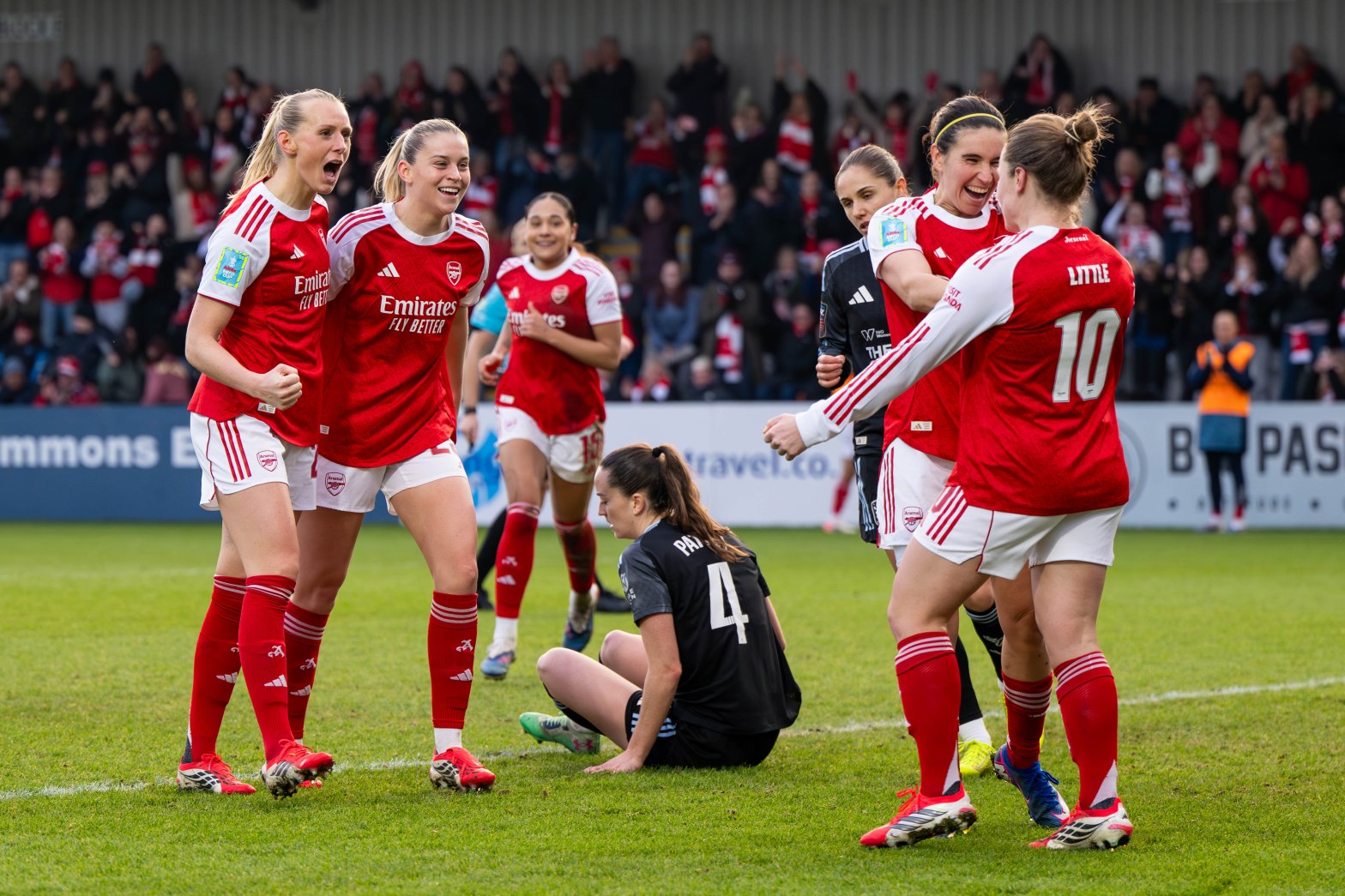 Teams: ARSENAL (4-3-2-1): Borbe, Fox, Wubbon-Moy, Catley, McCabe, Little (c), Caldentey, Mead, Russo, Smith, Blackstenius. Substitutes: Holmberg (for Fox 22′), Foord (for Smith 71′), Maanum (for Russo 71′), Pelova (for Caldentey 84′), Codina (for Little 84′).