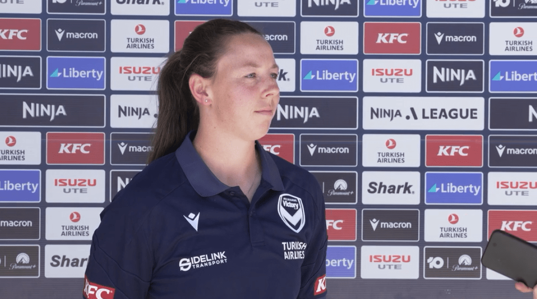 Above: Courtney Newbon talks to the press. Image: Melbourne Victory.