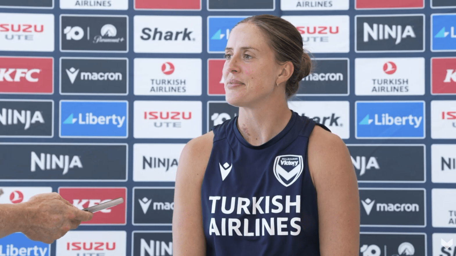 Above: Kayla Morrison talks to the media. Image: Melbourne Victory.