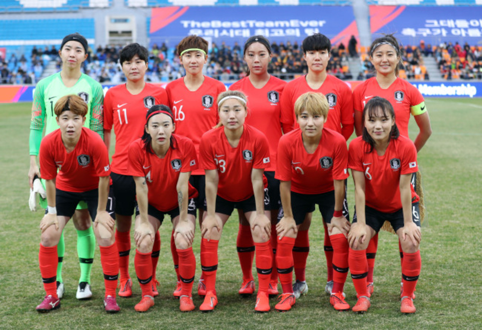 Above: The South Korean women’s national team lines up. Image: Yonhap.